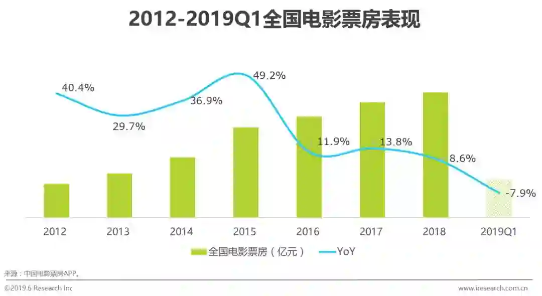 从片方的角度,中国电影市场正从持续几年的高增长逐渐回归常态增长,电影的收益将不再简单依赖院线票房收入,来源于视频平台的版权收益比重将不断加大。2019年Q1,中国电影总票房为186.1亿(含服务费),同比下降8.0%,总观影人次约4.8亿,同比大幅下降14.5%。与此相对应的,是在线视频平台电影线上观看的持续热度。据爱奇艺官方披露,2019年Q1在爱奇艺上观看电影的人次,比去年同期增长68%。