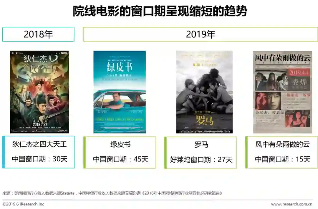 2018年的《狄仁杰之四大天王》在暑期档上线仅30天后,进入网络院线进行付费点播。到了2019年,不管是奥斯卡获奖影片《绿皮书》《罗马》,还是娄烨导演的文艺片《风中有朵雨做的云》,越来越多的电影,都有望在60天内,甚至是30天内进入网络流媒体平台,院线电影窗口期缩短的趋势进一步凸显。流媒体平台开创的TVoD模式,为院线电影创造更多收益点的同时,也为会员增加更多分级的权益,进一步增加会员粘性以及拉新留存的优势。