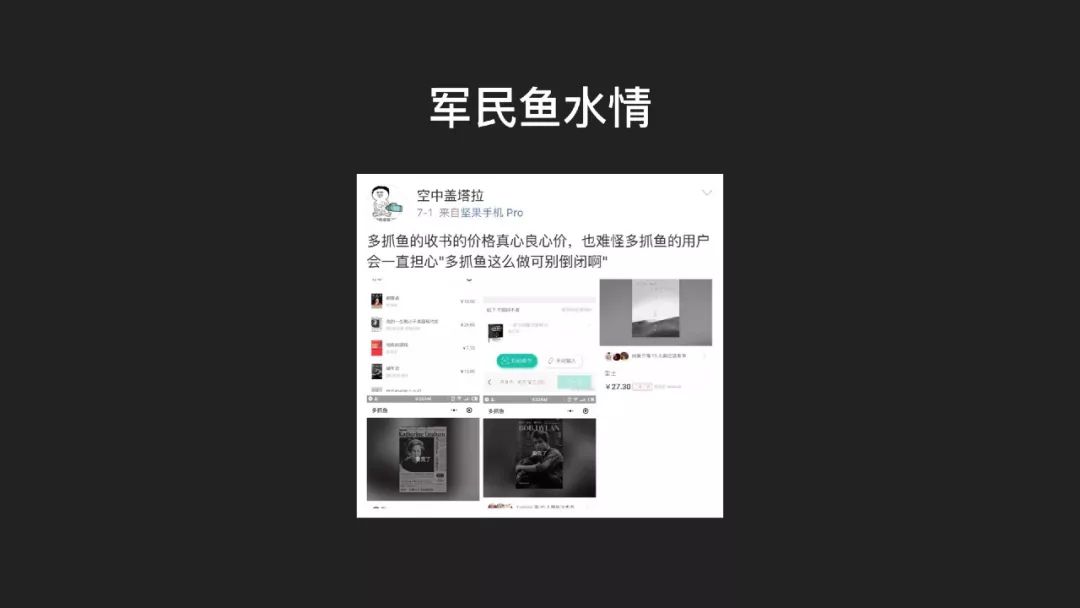 军民鱼水情。很多早期用户是很操心的,免费收书他一看顺丰物流单子这么贵,会想你们是不是在做公益事业?老担心多抓鱼是不是不挣钱,不要倒闭了,希望我们能多挣钱。