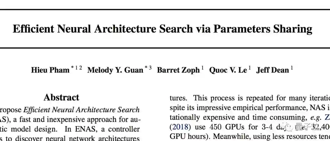 显然大牛们不会坐视不理。一年后,谷歌大脑团队发布了他们最新的研究成果:ENAS,全称是:Efficient Neural Architecture Search。