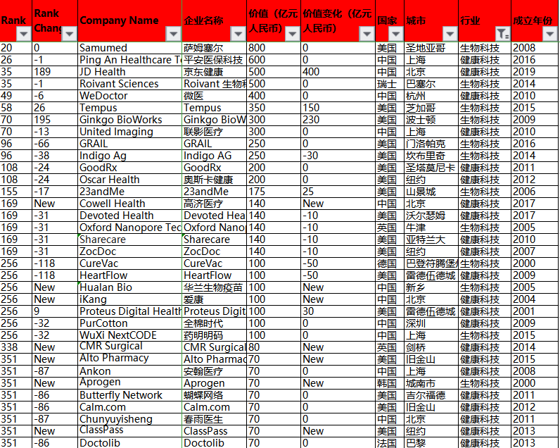 京东健康、华兰生物……47家中国医疗独角兽排名大公开