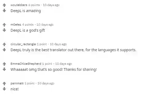 掌握多国语言的Techcrunch编辑Frederic曾这么评价DeepL:“谷歌翻译的风格非常直接,但却错过了一些细节和习语(或者把这些习语翻译错了),而 DeepL 经常可以提供更加自然的翻译效果,就像训练有素的人类翻译一样。”