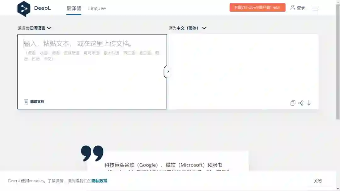 不知道DeepL?那Linguee应该听说过吧,就是那个运营十多年的在线外语词典,DeepL的前身正是Linguee。Linguee是一款出现多年的翻译工具,尽管使用广泛,也有一批忠实用户,但其翻译质量尚无法与谷歌翻译相提并论,尤其是考虑到后者品牌和地位的巨大优势。