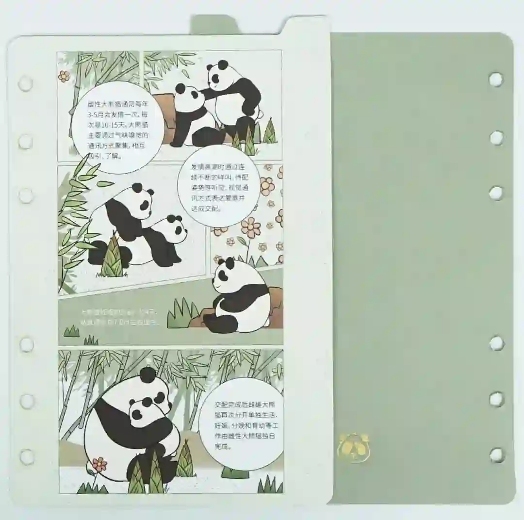 熊猫滚滚是一册活页本,第一次拿到手,就被前面几页可爱的熊猫“知识卡”征服了……