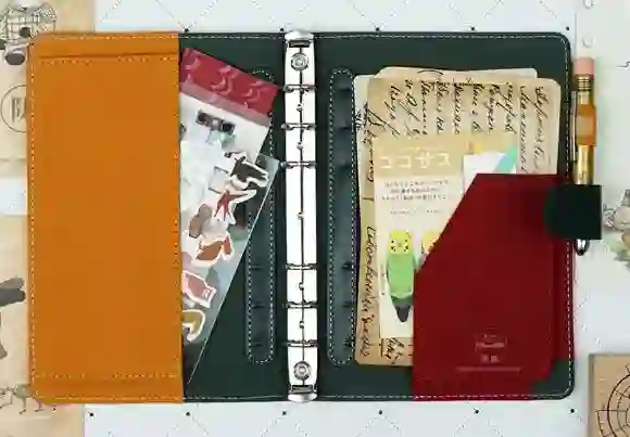 封面和封底内侧都设置了双层收纳袋,一大一小,能装下很多我的票据和卡片了。