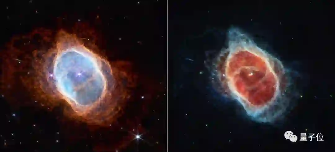 数千年来,这颗较暗恒星一直在向四面八方散发气体和尘埃环,该图像首次揭示这颗被尘埃所掩盖的恒星,编号为 NGC 3132,距离我们大约 2500 光年。