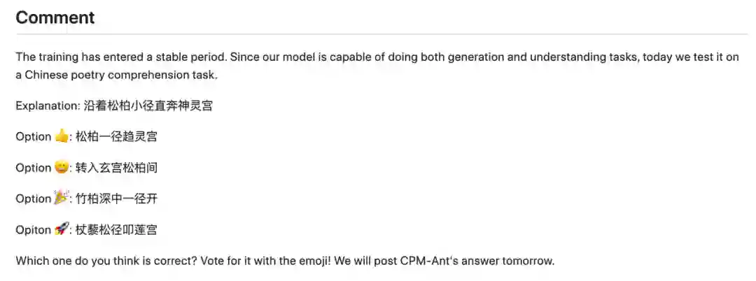 感兴趣的用户也可以使用 CPM-Ant 构建您自己的展示应用。如果您有任何应用想法、需要技术支持或者使用我们的 demo 遇到任何问题,欢迎您随时在我们的 论坛[6] 发起讨论!