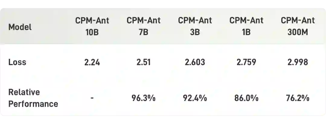 CPM-Ant 的训练过程 完全开放。我们发布了所有的代码、日志文件和模型存档并提供开放获取。CPM-Ant 也采用了允许商业化的开放许可协议。