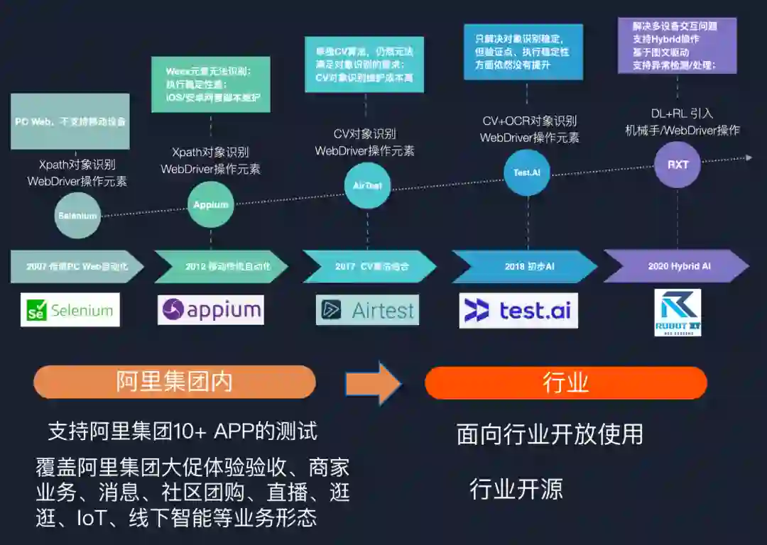 阿里在 2018 年内部开始使用机械手和摄像头做用户体验评测,2019 年时软件绿色联盟也推出了移动智能终端的行业标准,认定需要用摄像头和机械手来做评测。我们 2020 年和绿盟合作,成为了软件绿色联盟的官方评测平台之一。现在还在内测阶段,未来将面向全行业开放,希望我们的开源能减轻大家的负担,用无脚本的方式实现自动化测试。