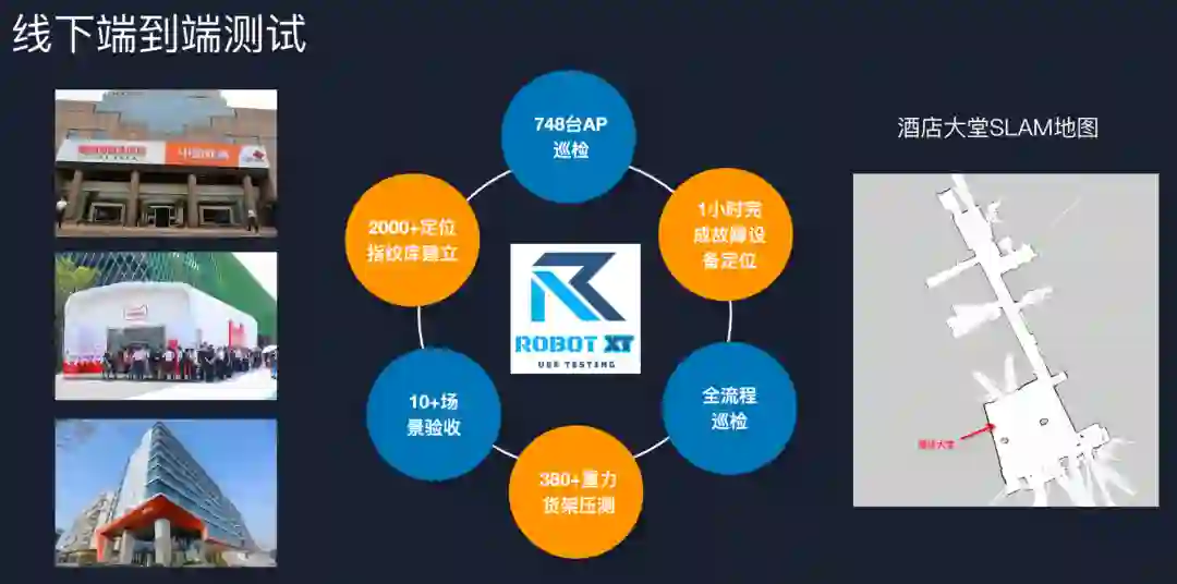 最后,线下门店无人超市的重力货架,也需要进行硬件测试,我们通过机器人对 300 多个重力货架,实现了压测和功能上巡检。
