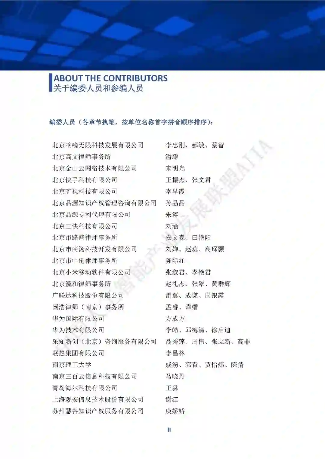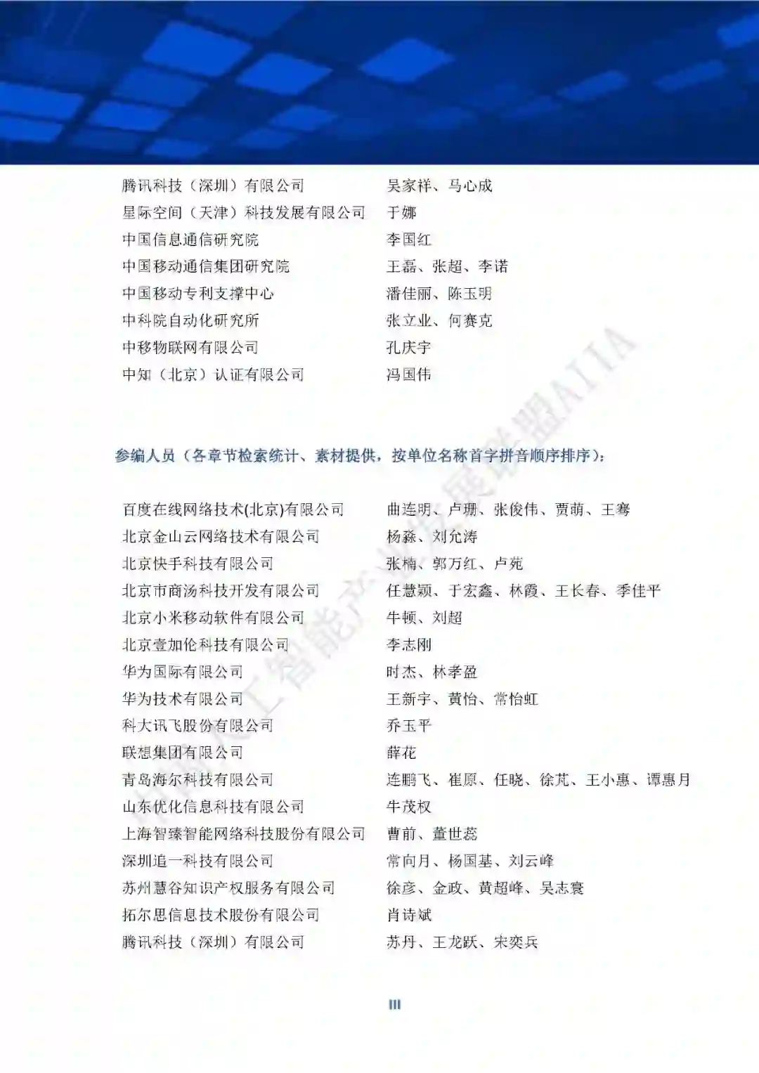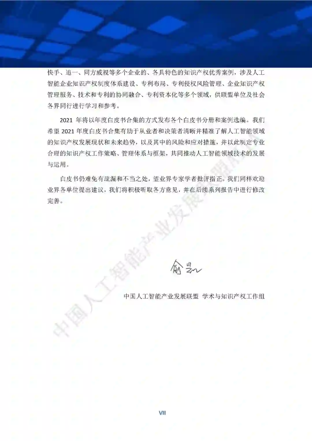 另外,本白皮书还附有工作组征集的来自小米、眼控科技、中国移动、商汤、快手、追一、同方威视等多个企业的、各具特色的知识产权优秀案例,涉及人工智能企业知识产权制度体系建设、专利布局、专利侵权风险管理、企业知识产权管理服务、技术和专利的协同融合、专利资本化等多个领域,供联盟单位及社会各界同行进行学习和参考。