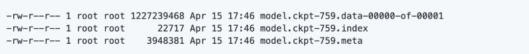 到这里我们已经训练得到了模型,但这个模型是.ckpt的文件格式,文件比较大,并且有三个文件: