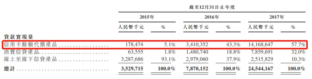 (1)信用卡余额代偿产品:持卡人将其信用卡未结余额结转至卡卡贷;