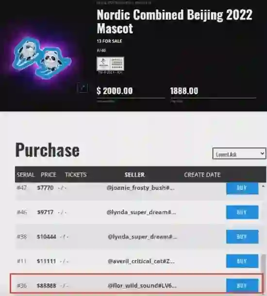 国际奥委会官方授权的冰墩墩数字盲盒已在nWayPlay发行,而市场上二次交易价格出现暴涨,涨幅最大的北欧联合北京2022吉祥物冰墩墩的别针系列,目前共有13个NFT在nWayPlay在售,最低报价已达2000美元,最高报价88888美元。与最初的发行价99美元相比,暴涨了近1000倍。(中国基金报)