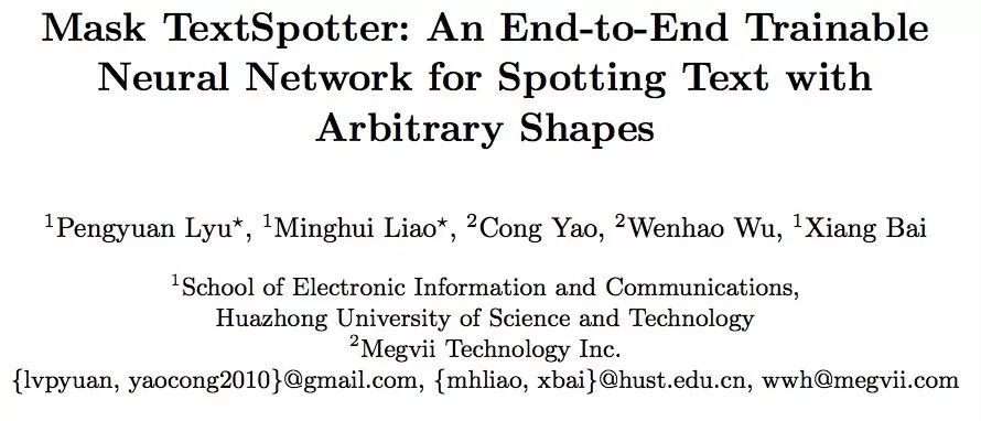 华中科技大学白翔老师团队在自然场景文本检测与识别领域成果颇丰,这篇被ECCV2018接收的论文《Mask TextSpotter: An End-to-End Trainable Neural Network for Spotting Text with Arbitrary Shapes》是其最新力作。