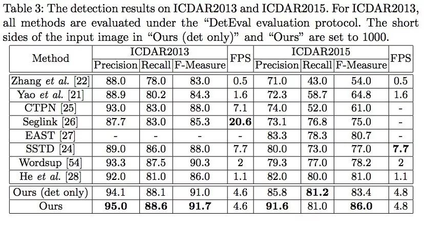 作者通过进一步的实验分析,发现:如果去除字符图子网络,只训练检测模型,检测的性能会下降,说明检测可以受益于识别模块。下图中Ours(det only)为只有检测的模型。