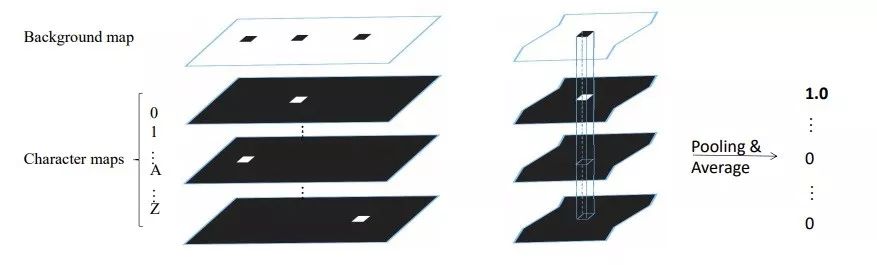 如上图所示,Pixel voting 方法根据字符背景图中每一个联通区域,计算每一字符层相应区域的平均字符概率,即得到了识别的结果。