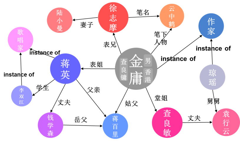 然而,TransE 模型难以处理多对一、一对多、多对多问题。以一对多问题为例,如存在两个三元组 ,在 TransE 模型下,我们有 ,由此可得 。这可能是不合理的,例如,我们有两个三元组为 (金庸,作品,倚天屠龙记) 和 (金庸,作品,天龙八部),从TransE模型的角度,要求倚天屠龙记 天龙八部这两个实体的嵌入向量非常相近,然而倚天屠龙记和天龙八部显然是不同的作品。