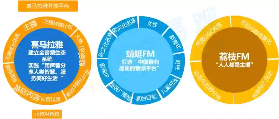 顺利度过白热化竞争的移动音频平台选定了赛道和方向,通过不断强化自身能力加速快跑。喜马拉雅在内容资源、主播培养、分发渠道发力,构建全音频生态系统;蜻蜓FM着力布局头部资源,渠道和内容双管齐下建设PUGC主播生态和品质内容战略;荔枝FM聚焦语音直播,以优质UGC资源和音频互动技术,倡导“人人都是主播”的理念。