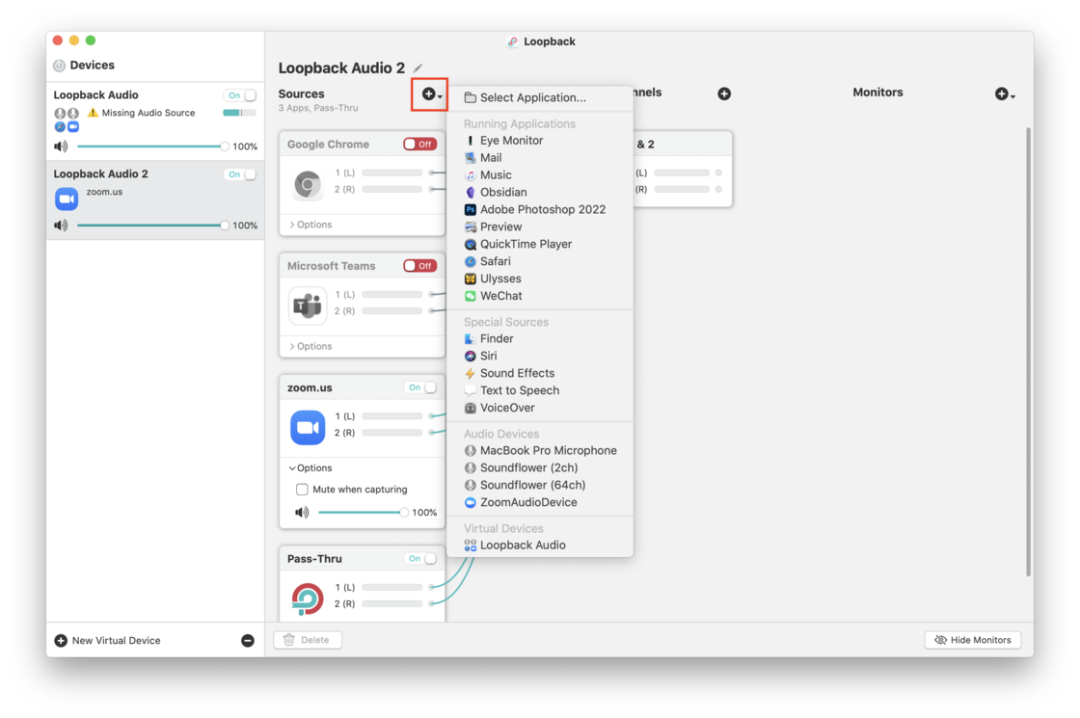 另外,如果使用了不常用的会议软件,如平时都是用 Zoom,这次转用了 Skype 或者 MS Teams,谨记在开始录屏前要在 Loopback 中加入这些软件,否则就会出现「录屏没声音」的恐怖故事……