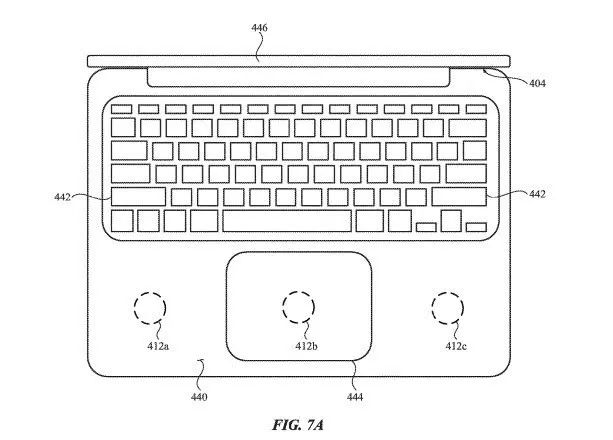 从苹果提交的这份专利描述来看,其中一个是关于在MacBook笔记本电脑中集成感应线圈。感应线圈有三个潜在的位置:位于触控板的两侧或直接位于触控板的下方。这样你只需将它们放在笔记本电脑上即可为iPhone或Apple Watch充电。