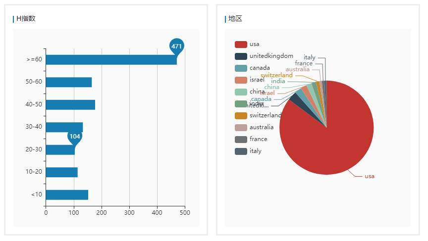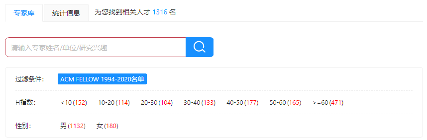 此外,ACM Fellow 人才库还提供了按 H 指数、所在国家地区等维度的分析。
