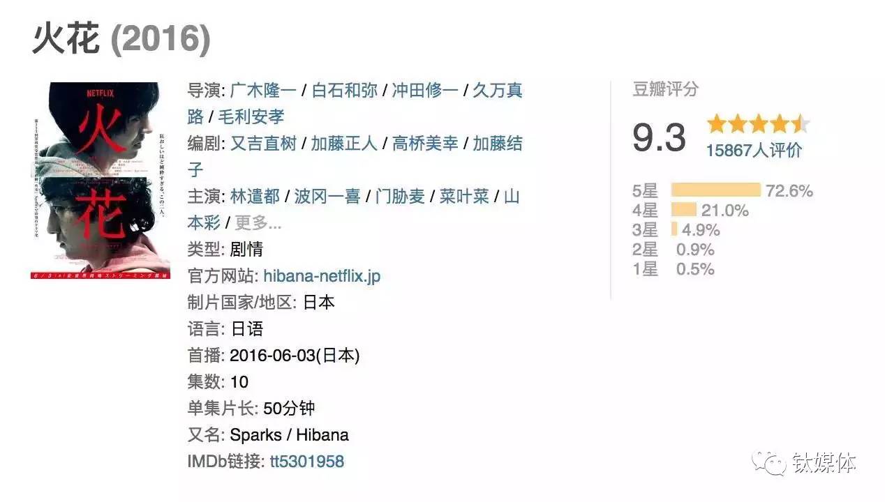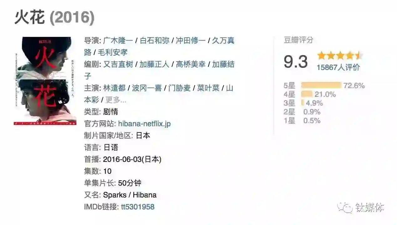 Netflix涉足日本市场之后作品不断,《火花》是其中口碑最好的一部,豆瓣9.3分。