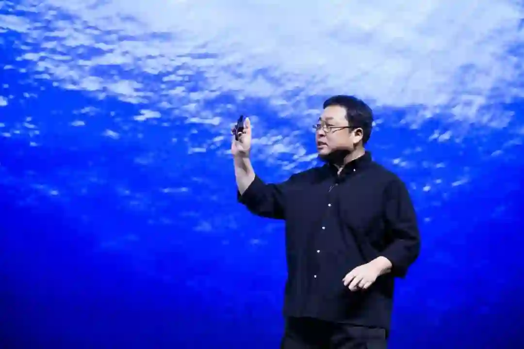 而且,这一次出发,他又晚点了,再次重新定义7点半,直到7点49他才登上舞台,“老人与海”发布会正式开始。发布会的大屏幕上,满是蓝色的海水,契合“老人与海”的主题。