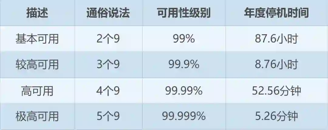想要实现系统的高可用,首先要明确,什么样的系统可以称之为“高可用”。简单来讲,就是不宕机。“高可用性”常常被定义为 IT 系统的运营综合指标,系统的稳定可靠程度越靠近 100%,就代表系统越稳定,这种“稳定”往往需要多方面技术调优才能实现。