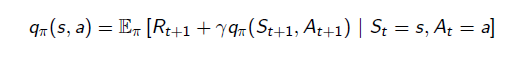 动作值函数同样也满足Bellman方程,其Bellman方程公式(6)所示: