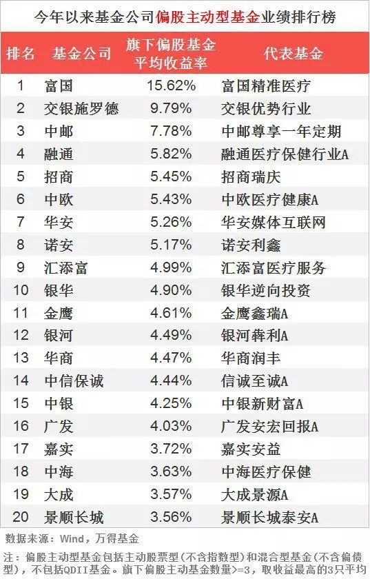 我们选出各家旗下偏股主动型基金业绩最好的三只基金今年以来收益率求平均得出,富国旗下偏股主动型基金业绩表现最优,平均收益率为15.62%,其次是交银施罗德,9.79%。