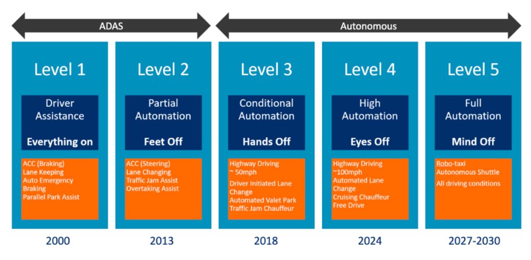 如上图所示,L3级是从ADAS迈向全自动驾驶的第一步,它代表了在条件许可的情况下,车辆可以完成所有的驾驶动作,并具备提醒驾驶者功能。驾驶者无需监控驾驶环境,可以分心,但不可以睡觉,需要随时能够接管车辆,以便随时应对可能出现的人工智能应对不了的情况。这便引发了一个有趣的现象,一旦驾驶员的手脱离了方向盘,会很愉快地处理电子邮件、文本等,使眼睛与思想也脱离了道路,一旦遇到意外,分心的驾驶员能多块地回到“方向盘”上?从责任的划分方面考虑,跳过L3级自动驾驶能够更好地判断驾驶员是在控制车辆还是车辆在进行自动驾驶。不过即使汽车制造商决定跳过L3这一阶段,从L3到L4所需要的技术复杂性也要高得多。