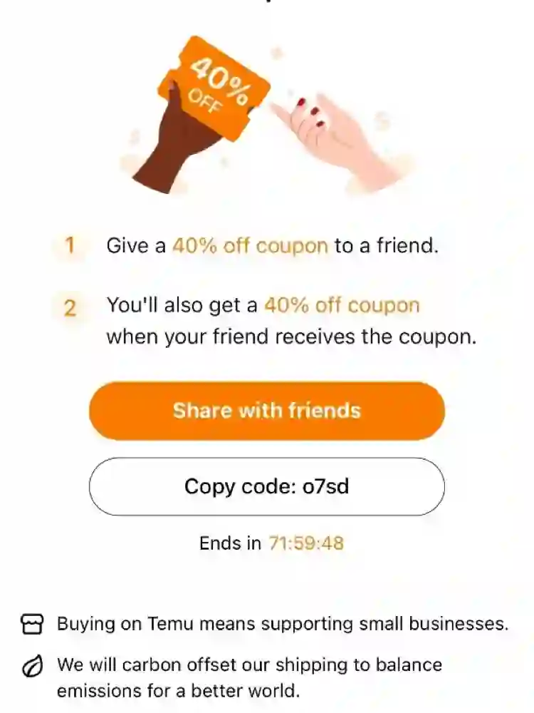 虽然,Temu并没有上线“砍一刀”功能。不过,只要将链接分享给朋友,双方都能享受40%的折扣。这有一点类似于国内好友拼单的模式。因此,在小红书等社交平台上,出现了一波自来水分享。一些人甚至找到了最佳省钱攻略,一位IP地址在美国的用户在社交平台上分享,折扣上限是10美元,而40%的折扣拼到25美元刚好可以优惠10美元,买25美元是最划算的。