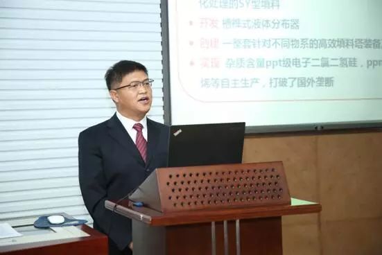 该项成果鉴定委员会主任委员舒兴田院士在听取课题组汇报后,高兴的指出:超高纯度化学品是电子、航天、军工等行业急需的高端基础化工材料,其精馏核心技术的开发是实现产品高端化、提升我国制造质量和发展水平的重要途径,超高纯化学品精馏存在分离物系复杂、杂质与产品沸点相近、所需理论板数和能耗随纯度提高呈指数增长等世界性难题,一直是制约产品超高纯度化学品生产的瓶颈之一,也是国内外抢占的战略制高点。
