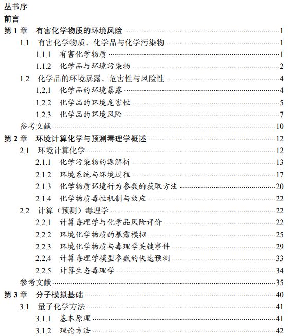 环境计算化学与毒理学是面向化学品风险预测与管理需求的新兴研究领域。本书介绍有害化学物质、化学品、化学污染物及环境暴露、危害与风险的基础概念,讨论学科的发展背景、内涵与外延,阐述分子模拟以及环境科学中定量构效关系(QSAR)的原理和方法;结合作者的研究工作,介绍基于分子模拟而预测有机物环境行为和代谢转化的方法案例、有机物环境行为与毒理效应参数的 QSAR 模型。本书可供环境科学与工程专业以及从事化学品风险评价的研究生和科研工作者参考。