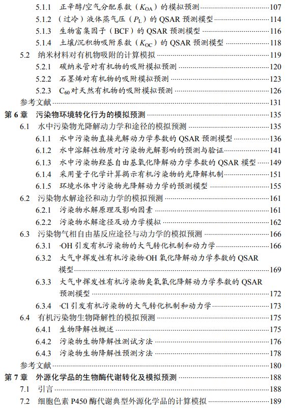 针对有机物环境光降解模拟预测方面的研究,一直持续至今。随着工作的深入,我们发现该问题远非当初设想的那么简单。有机物环境光降解的机理非常复杂,受多种环境因素的复合影响,如今我们认识到,无论是有机物的环境行为还是其毒理效应,其模拟预测的科学基础都应该是对机理的正确认识。对化学物质毒理效应的预测,尤其需要深入揭示化学物质的毒性通路。故课题组也开展了外源物质酶促转化模拟预测、小分子与生物大分子相互作用模拟等方面的研究,以拓展在毒性效应方面的研究。这样一些相关结果汇集起来,便成了本书的主体内容。