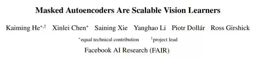 11 月 12 日,一篇由 Facebook AI 研究院完成、何恺明一作的论文《Masked Autoencoders Are Scalable Vision Learners》成为了计算机视觉圈的热门话题。