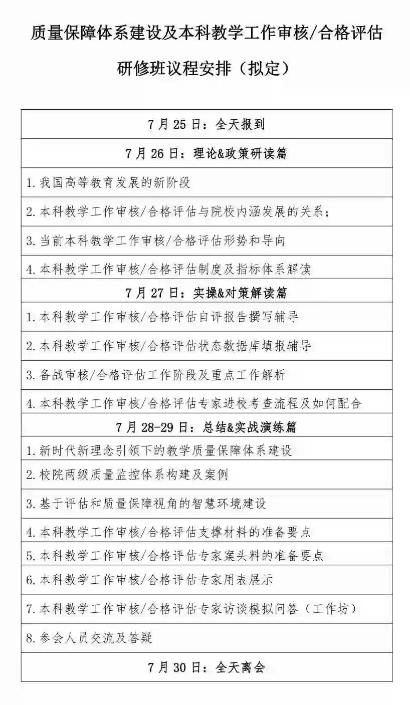 【邀请函】质量保障体系建设及本科教学工作审核/合格评估专题研修班
