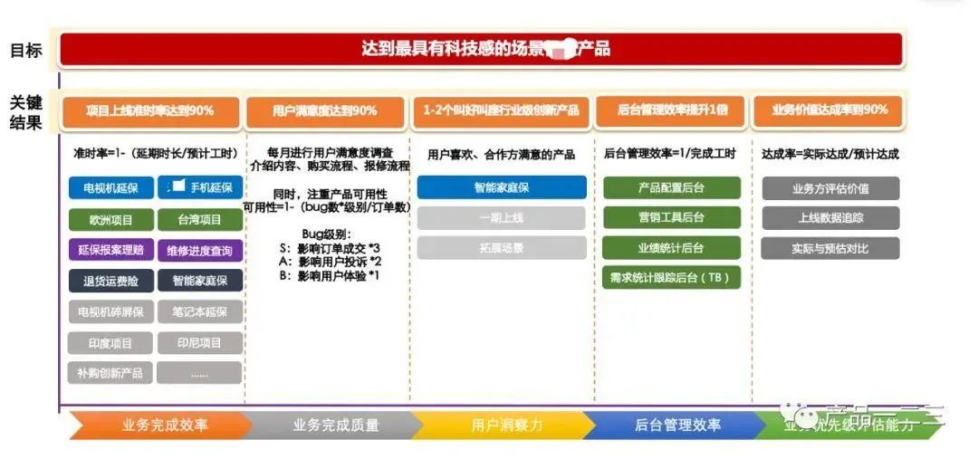 项目上线准时率达90%:这个关键结果是为了考察产品人员对于需求的收集-分析-设计-开发全流程的效率;