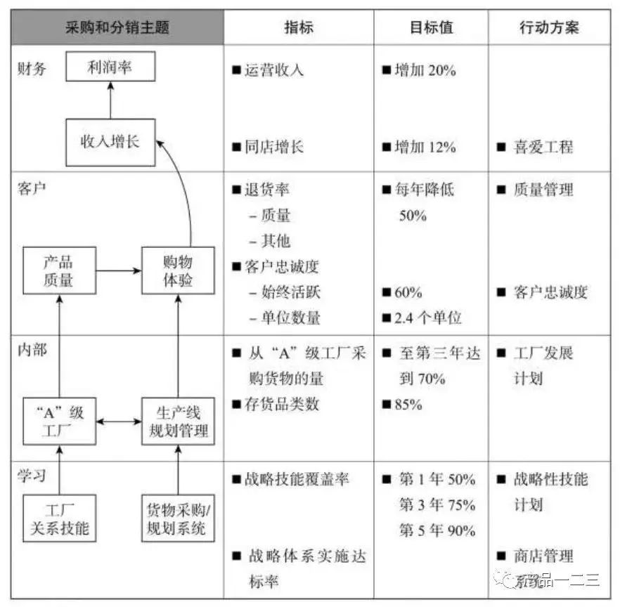《战略中心型组织》一书中对于一家服装零售公司的战略地图架构绘制如下: