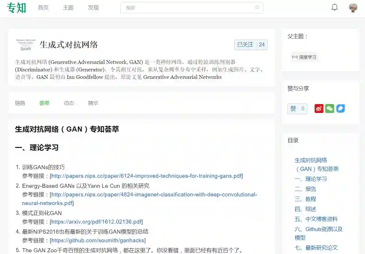 【导读】主题荟萃知识是专知的核心功能之一,为用户提供AI领域系统性的知识学习服务。主题荟萃为用户提供全网关于该主题的精华(Awesome)知识资料收录整理,使得AI从业者便捷学习和解决工作问题!在专知人工智能主题知识树基础上,主题荟萃由专业人工编辑和算法工具辅助协作完成,并保持动态更新!另外欢迎对此创作主题荟萃感兴趣的同学,请加入我们专知AI创作者计划,共创共赢! 今天专知为大家呈送第十一篇专知主题荟萃-生成式对抗网络GAN知识资料大全集荟萃 (理论/报告/教程/综述/代码等),请大家查看!专知访问www.zhuanzhi.ai, 或关注微信公众号后台回复" 专知"进入专知,搜索主题“GAN”查看。此外,我们也提供该文网页桌面手机端(www.zhuanzhi.ai)完整访问,可直接点击访问收录链接地址,请文章末尾查看!此为初始版本,请大家指正补充,欢迎在后台留言!欢迎大家分享转发~