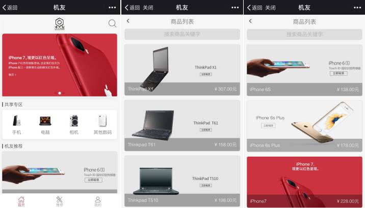 “机友科技”是一家提供电子产品共享服务的公司。华中、华北地区的C端用户可在微信号“机友共享平台”上租赁手机、电脑、相机和其他二手电子产品。租金按月支付,一般为100元~300元/月。