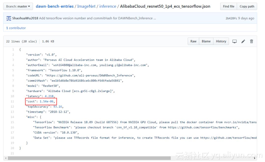 图4 DAWNbench竞赛阿里云的推理成本数据