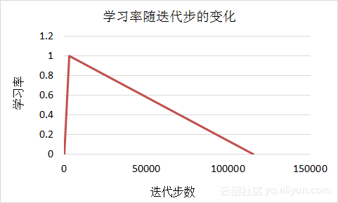 在训练ReseNet50-v1模型的过程中,采用经典的三段式格式,很难达到93%的Top-5精度。为了解决精度问题,参赛团队遍历了超参数空间,但ReseNet50-v1模型的Top-5精度仍旧难以稳定的超过93%。为了解决该问题,团队设计了图5中的学习率格式,训练的早期学习率线性增大至峰值,随后线性衰减。以该学习率为基础,最终得到了Top5精度为93.28%的ResNet50-v1模型。