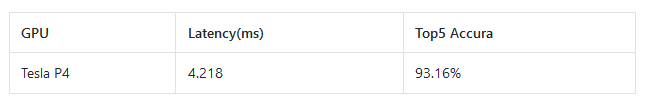 表1,阿里云ecs.gn5i-c8g1.2xlarge实例的平均推理性能及精度