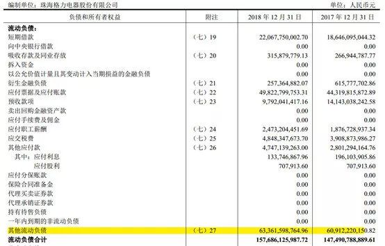 言归正传,格力的销售返利从2017年的595亿,2018年中的592亿,上升至2018年末的618.8亿。——看,一年过去,咱们家鲨鱼还是那么健硕,放心了。