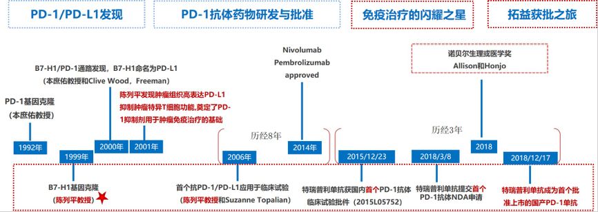 2013年,癌症免疫治疗因为其卓越的疗效和创新性,被《科学》(Nature)期刊评为年度最重要的科学突破。近年来,癌症免疫治疗捷报频传,也让免疫检查点抑制剂成为肿瘤治疗领域炙手可热的“网红”,尤其在2018年,免疫风暴正式席卷中国。截至目前,已经有4款PD-1单抗在国内获批上市,开启了中国肿瘤免疫治疗2.0时代!2018年12月,君实生物的特瑞普利单抗 (Toripalimab, 拓益TM)在中国获批用于标准治疗失败的晚期黑色素瘤,改变了中国没有国产免疫检查点抑制剂的历史。与此同时,其亲民的价格也让更多肿瘤患者看到了新的希望。那么特瑞普利单抗是如何一步步地从实验室走向临床,成为国内首个国产PD-1单抗的呢?