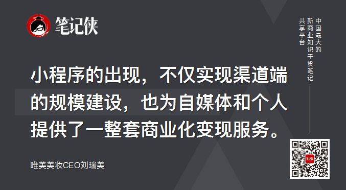 唯美梳妆台垂直化小程序的出现,不仅实现了渠道端的规模建设,同时,也为自媒体和个人提供了一整套商业化变现服务: