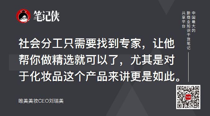 社会分工就是这样,不需要你成为各行各业的专家,你只需要找到专家,让他帮你做精选就可以了,尤其是对于化妆品这个产品来讲,更是如此。