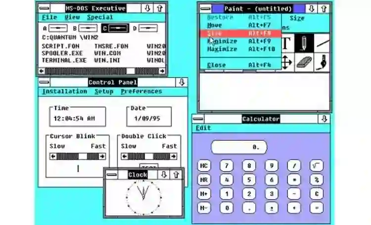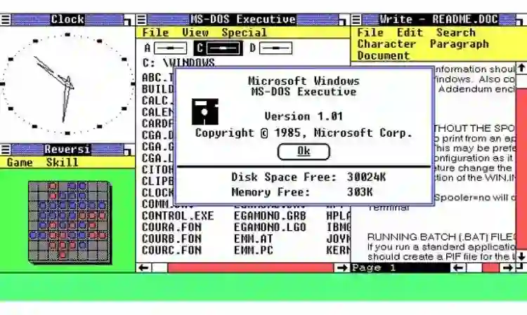 1985 年,Windows 1.0 发布。它采用了 16 位操作系统 MS-DOS 的图形界面,它用窗口替换了命令提示符,还自带了日历、记事本、计算器等简单的应用程序,使得电脑操作更为简单。但当时很多人认为 Windows 1.0 只是一个低劣的产品。